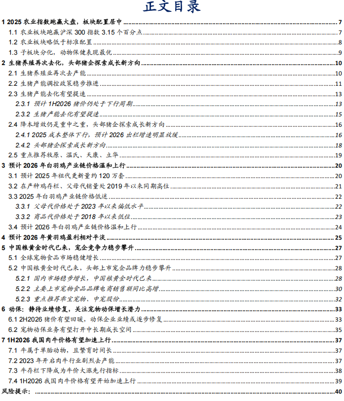 2025 农业指数跑赢大盘,板块配置居中