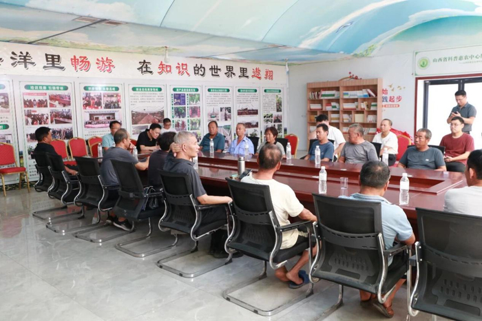 运城市“老专家服务团”成员与临猗县七级镇樊桥村党员干部座谈,就发展葡萄主导产业提出科学建议。(图片来源:运城市委组织部)