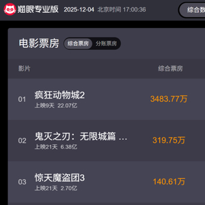 11月26日,动画电影《疯狂动物城2》上映。据猫眼专业版数据,截至12月4日17:00,电影《疯狂动物城2》总票房破22亿,刷新中国影史进口动画片票房冠军等多项纪录。自同步北美上映以来,这部电影的中国内地累计票房远超北美市场表现,成为该片全球最大的票房市场。