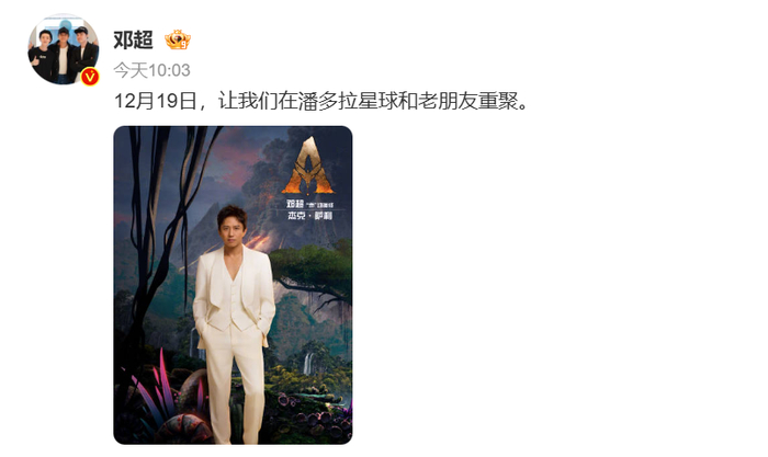 邓超也发文:12月19日,让我们在潘多拉星球和老朋友重聚。