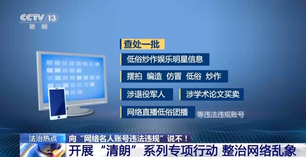今年以来,中央网信办持续开展“清朗”系列专项行动,对短视频领域恶意营销乱象、AI技术滥用、整治涉企网络“黑嘴”“自媒体”发布不实信息、恶意挑动负面情绪问题、网络直播打赏乱象等网络乱象进行了专项整治。