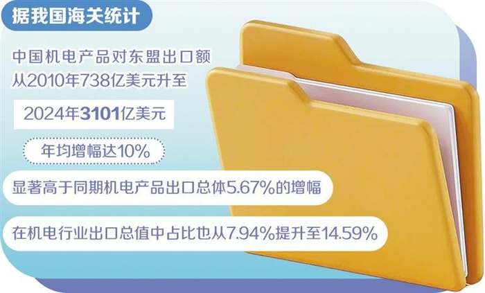 今年10月28日,中国与东盟成功签署中国—东盟自贸区3.0版升级议定书,这一重大举措将为区域经贸合作注入强劲动力,更为机电产业国际贸易合作开辟全新空间、注入持续增长动力。