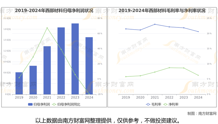 西部材料年报数据显示(如上图),2024年实现营业总收入29.46亿,同比增长-8.7%,近5年复合年增长率9.76%。