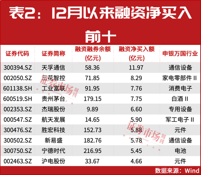 此外,杠杆资金净买入规模居前的公司还有工业富联、贵州茅台等,机构调研家数最多的杰瑞股份也在其中(见表2)。