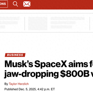 外媒称,此次估值较上一轮二次股票出售时的4000亿美元实现翻倍。SpaceX采用“要约收购”(Tender Offer)模式,通常每年进行两次,允许员工和早期投资者出售股份套现,同时也为新投资者提供入场机会。尽管8000亿美元的估值目标雄心勃勃,但鉴于SpaceX拥有一批长期支持其高估值的投资者群体,市场对此普遍持乐观态度。