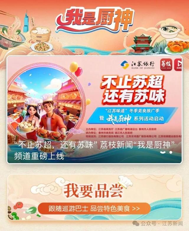 从“脚尖”到“舌尖”,“苏式德比”再次开打——今天,“江苏味道”冬季美食推广季暨“我是厨神”系列活动启动仪式在靖江举行。