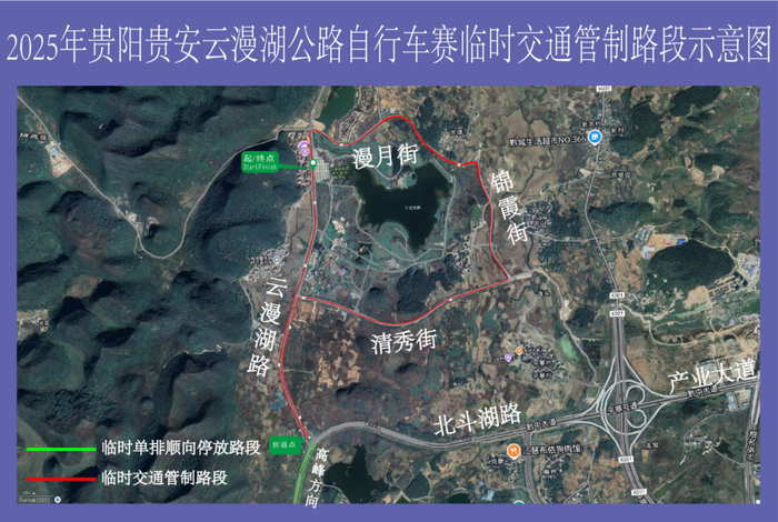 2025贵阳贵安公路自行车赛于2025年12月7日在贵安新区云漫湖举行。为确保赛事安全顺利进行,根据《中华人民共和国道路交通安全法》的相关规定,决定对贵安新区云漫湖路、清秀街、锦霞街、漫月街部分路段实行临时交通管制,具体如下: