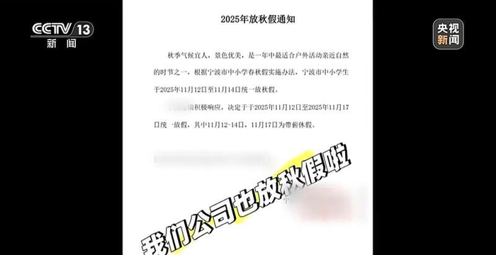 从已探索20多年的杭州,到新近加入探索的城市,春秋假制度都处于提质升级的关键期,比如在用人单位的带薪休假制度上,就应该实现突破。记者注意到,宁波的一家公司,就在今年学生秋假期间,给员工也放了秋假,并特别强调是带薪休假。专家在调研中发现,春秋假恰恰是落实带薪休假的机会。前不久发布的十五五规划建议,也明确提出,落实带薪错峰休假。