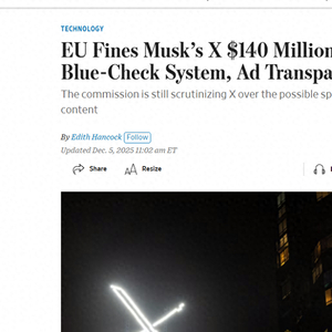 欧盟委员会日前表示,在对这家社交网络的运营方式进行了长达数年的广泛调查后发现,X违反了《数字服务法》(Digital Services Act)。该委员会指控,X平台的蓝V认证系统的设计欺骗了用户,违反了规定。该委员会还表示,该平台的广告透明度和数据访问规则也违反了该法。