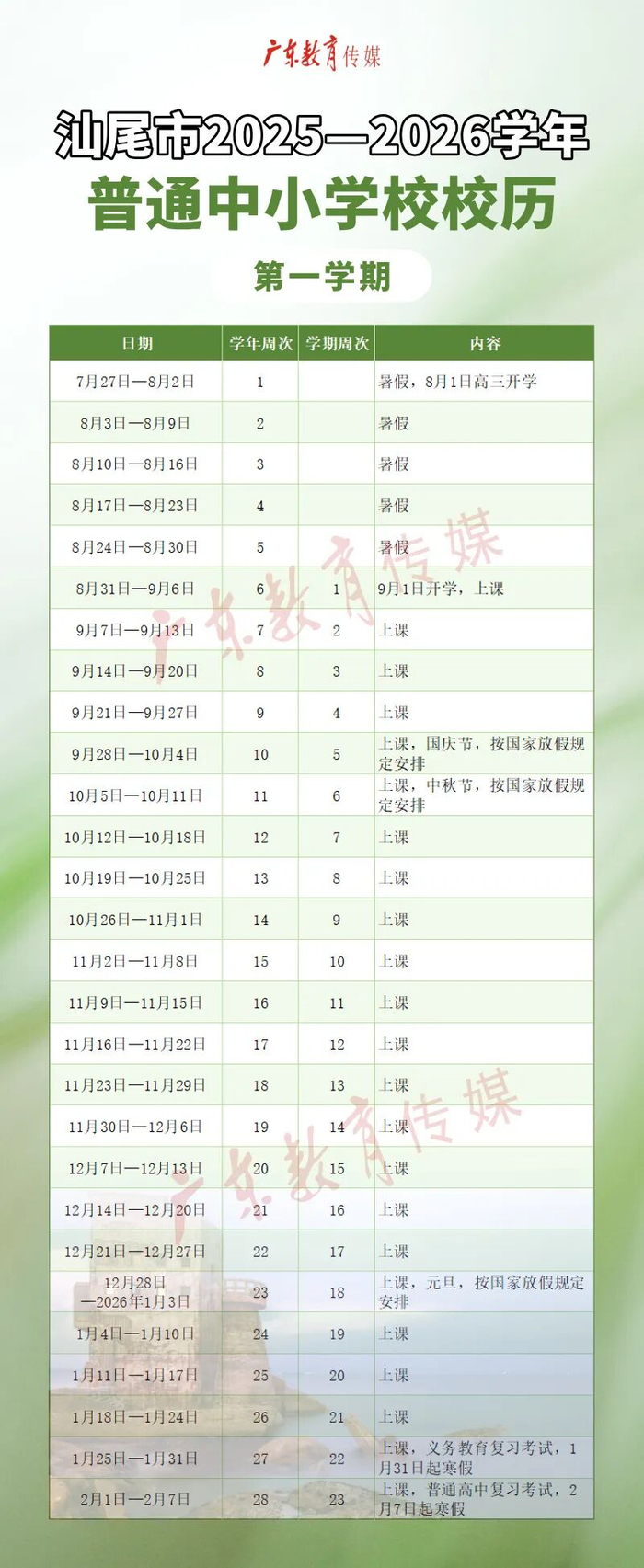 以下具体时间节点来源于各市2025-2026学年校历,内容仅供参考,以各地最新通知为准。