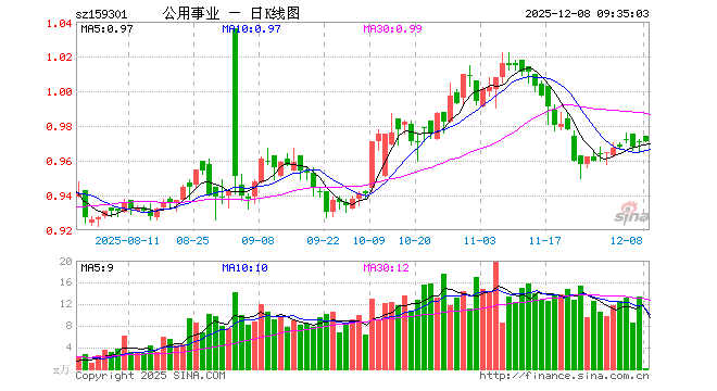 公用事业ETF(159301)开盘涨0.31%,重仓股长江电力涨0.00%,中国核电涨0.34%