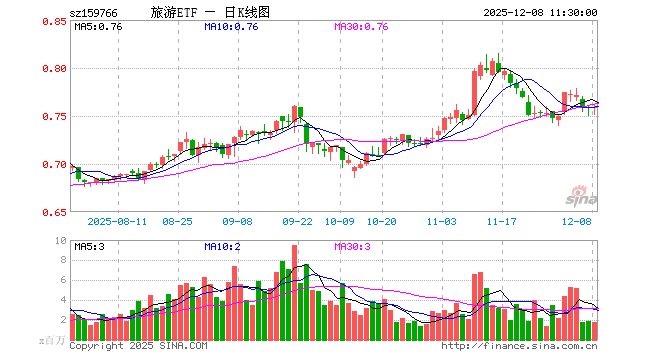 12月8日,截止午间收盘,旅游ETF(159766)涨0.13%,报0.759元,成交额1.34亿元。旅游ETF(159766)重仓股方面,中国中免截止午盘涨0.84%,上海机场涨0.57%,中国东航涨1.57%,宋城演艺涨0.13%,南方航空跌0.14%,中国国航涨0.00%,华侨城A跌0.78%,锦江酒店跌0.91%,春秋航空跌1.67%,首旅酒店跌1.64%。