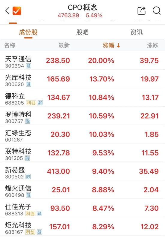 CPO概念大幅拉升