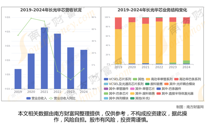 根据南方财富网产业链数据显示,公司产品线涵盖高功率单管系列产品、高功率巴条系列产品、高效率VCSEL系列产品、光通信芯片系列产品等产品;产品广泛应用于计算机、网络通信、消费电子、智能化工业设备等领域。