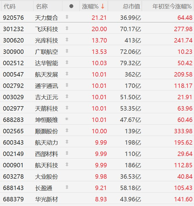 A股异动丨商业航天股掀涨停潮,航天发展等超10股涨停