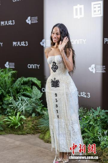 12月8日,电影《阿凡达3》中国首映礼在海南三亚举行。图为电影《阿凡达3》女主角扮演者佐伊·索尔达娜出席仪式。中新社记者 骆云飞 摄