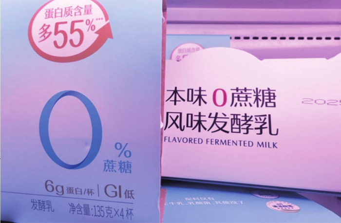 12月4日,在北京某商超酸奶冷柜中,带有“0蔗糖”等标签的商品占据主流位置。