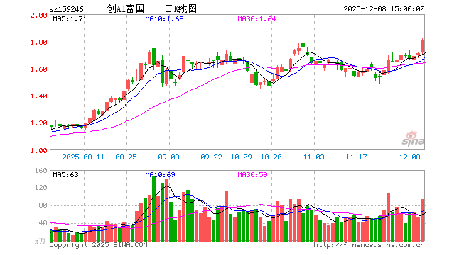 12月8日,创业板人工智能ETF富国(159246)涨5.43%,成交额1.68亿元。当日份额增加800.00万份,最新份额为11.50亿份,近20个交易日份额增加5.76亿份。最新资产净值计算值为20.72亿元。