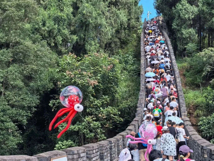 在“登高福地、潮玩胜地、长城文化体验区”既有品牌形象基础上,景区于2025年精准提出“小小长城、轻轻户外、微微度假”的差异化城市旅行目的地定位,进一步凸显景区的亲切感、可及性和轻体验场景特点。景区以四川人家门口的小小长城为资源依托,聚焦新手及亲子客群需求,打造“有腿就行”的轻量化户外运动项目与游乐产品,推广碎片化、慢节奏的度假模式。这一定位调整不仅是宣传口径的优化,更是景区从内容供给到场景营造的全方位运营理念升级,有效破解了游客时间不充裕、体力跟不上等痛点,在碎片化休闲时代抢占用户心智。
