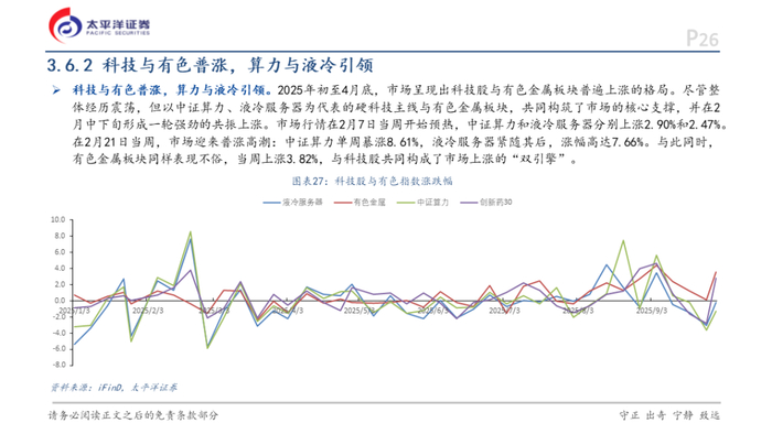 1)当前市场呈现显著“科技强、权重弱”跷跷板效应。2024年Q4至2025年Q3期间,科技成长板块呈现强势波动上涨特征。2025年8月单月,创业板指大幅上涨24.13%,CS人工智能指数上涨36.27%,科创50指数上涨28.00%。与此同时,科技板块波动显著加剧,科创50指数在10月单月最大回撤超过10%。相比之下,以申万银行指数为代表的权重板块表现明显滞后。2025年8月银行指数下跌1.62%,8-10月区间跌幅超10%,与科技板块形成鲜明反差。估值层面分化更为明显,创业板指PE-TTM已处于历史高位,而申万银行指数PB长期维持在0.6-0.8倍的历史低位区间,走势与估值的双重分化达到极端水平。