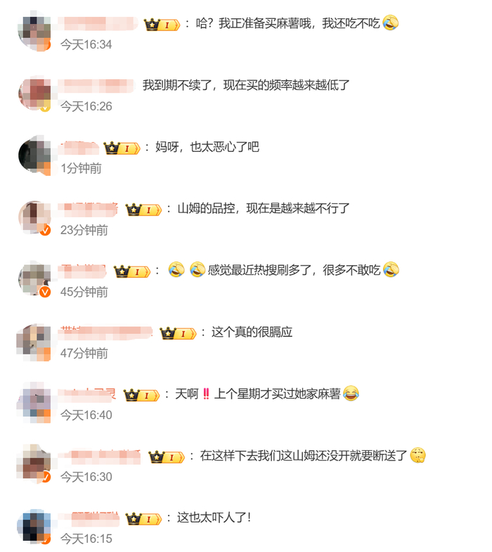 另外,今年以来山姆会员店频繁因选品问题陷入舆论风波,包括“山姆下架多款口碑商品”“山姆上架普货”等。上月,山姆因对App界面、支付方式等进行一系列更新,再遭网友吐槽“山姆变成了盒马”。