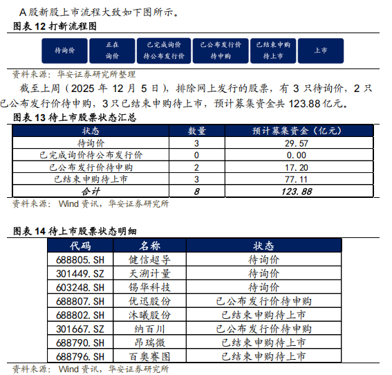 本报告摘自华安证券2025年12月8日已发布的《【华安证券·金融工程】金工周报:摩尔线程上市,年内打新收益最高新股 》,具体分析内容请详见报告。若因对报告的摘编等产生歧义,应以报告发布当日的完整内容为准。