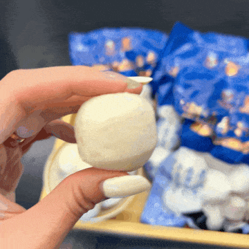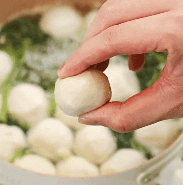 最后用手工一颗颗挤入温热的原汤中定型。