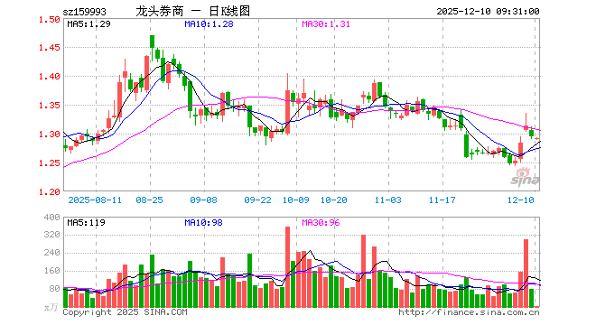 证券ETF龙头(159993)开盘跌0.23%,重仓股东方财富跌0.30%,中信证券跌0.39%