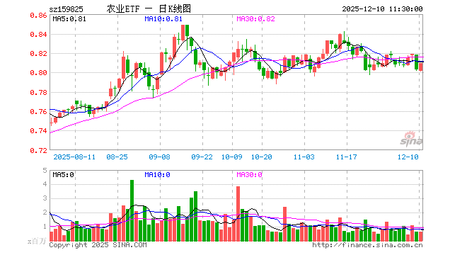 农业ETF(159825)涨0.75%,半日成交额4904.61万元