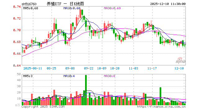 12月10日,截止午间收盘,养殖ETF(516760)涨0.15%,报0.674元,成交额157.45万元。养殖ETF(516760)重仓股方面,牧原股份截止午盘跌0.67%,温氏股份涨0.00%,海大集团涨0.74%,新希望跌0.44%,梅花生物涨0.30%,大北农跌0.25%,圣农发展涨2.85%,生物股份跌2.23%,天康生物涨0.29%,立华股份涨1.15%。