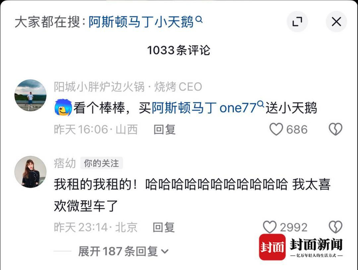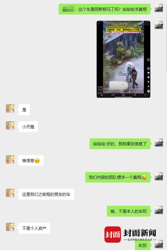 针对网友对车辆产权的猜测,封面新闻独家采访痞幼经纪人,对方明确回应:“节目中的确是阿斯顿・马丁小天鹅,但并非痞幼个人资产,而是向朋友租赁的拍摄用车。” 经纪人表示,“选择该车是因其小巧适配拍摄场景、外观低调,未料引发双重讨论。”