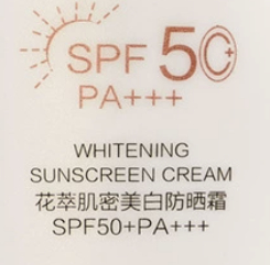32. 标称广州市臣采日化有限公司生产的花萃肌密美白防晒霜SPF50+PA+++,不合格项目为:丁基甲氧基二苯甲酰基甲烷、甲氧基肉桂酸乙基己酯、水杨酸乙基己酯、奥克立林、苯基苯并咪唑磺酸。