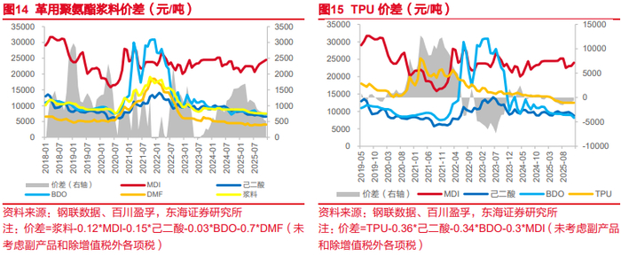 下游应用:MDI下游应用更加多元、增长稳定,而TDI则主要集中在软泡材料,一般与地产周期强相关,这导致TDI的抗周期能力较弱;