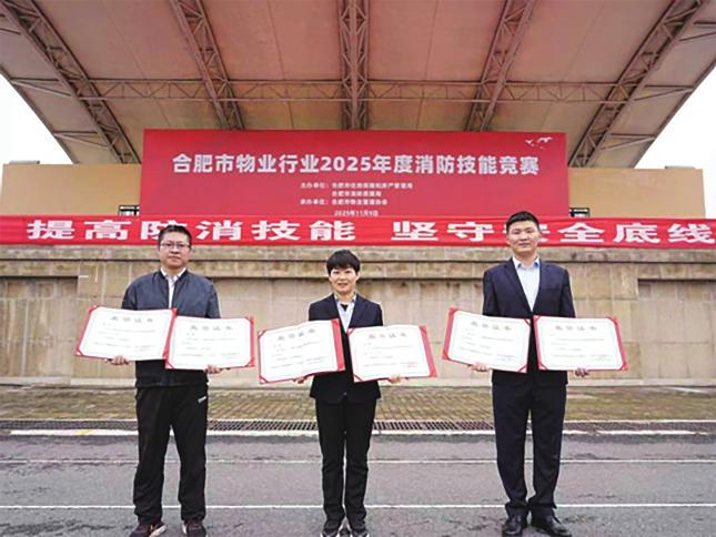 鹏徽集团积极组织参与2025年合肥市物业行业消防技能竞赛,鼓励员工在比赛中提升技能、交流经验。三名参赛人员精神饱满、全力备赛、操作熟练,荣获团体三等奖、个人三等奖及合肥市物业行业消防技术标兵,展现出鹏徽人良好的专业素养和昂扬向上的精神风貌。