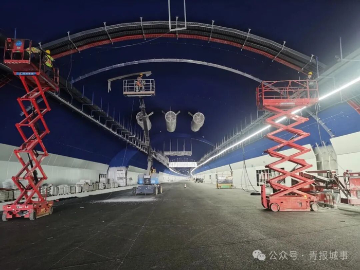 12月12日,小橙实地探访项目建设现场发现,项目正进入最后的工程收尾阶段,隧道装饰与机电安装工程正在进行系统调试,空中导向标志已安装到位。面对多工种交叉作业的复杂局面,交发集团正科学统筹施工现场安全提级管理,强化协同调度与成品保护,确保一次成优。