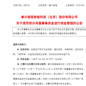 关于投资风险,摩尔线程提醒称,尽管公司将投资安全性高、流动性好、有保本约定的投资产品,但金融市场受宏观经济影响较大,公司将根据经济形势以及金融市场的变化适时适量介入,但不排除该项投资受到市场波动的影响。