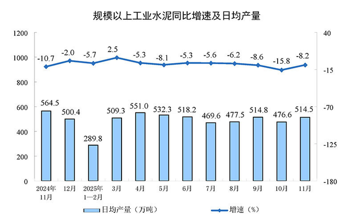 分产品看,11月份,规模以上工业623种产品中有310种产品产量同比增长。其中,钢材11591万吨,同比下降2.6%;水泥15434万吨,下降8.2%;十种有色金属699万吨,增长4.7%;乙烯309万吨,增长7.3%;汽车351.9万辆,增长2.4%,其中新能源汽车184.1万辆,增长17.0%;发电量7792亿千瓦时,增长2.7%;原油加工量6083万吨,增长3.9%。