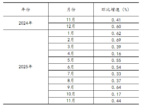 根据季节调整模型自动修正结果,对2024年11月至2025年10月份规模以上工业增加值环比增速进行修订。修订结果及2025年11月份环比数据如下: