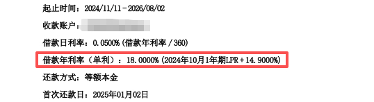 2024年11月至2025年5月期间,张女士因资金周转需求,先后7次通过微信平台申请“微粒贷”。合同显示,她使用的7笔借款利率报价均采用“借款月份的1年期LPR+浮动利率”方式,尽管借款月份的LPR报价有所不同,但加上浮动利率后,每笔借款年利率均为18%。