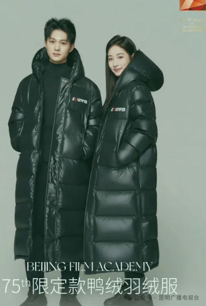 一是明星效应。例如在中央戏剧学院,冬季校园里常见学生穿着同款黑色长款羽绒服,被戏称为“中戏复制人”。演员胡先煦在综艺中也身穿中戏羽绒服,带动了公众关注。