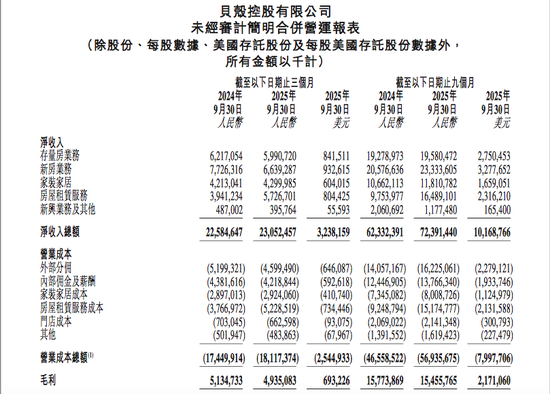 :贝壳2025年第三季度财务业绩