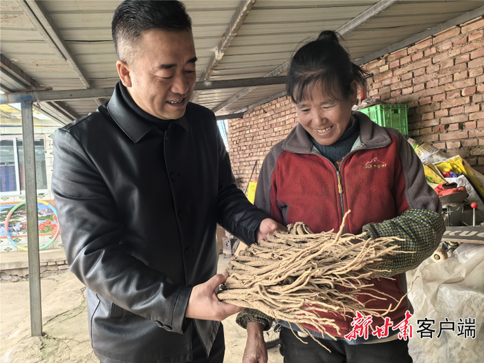 王喜俊捡起一片党参,用粗糙的手指摩挲着,断面上呈现出云朵般的纹理。他介绍说,“我们渭源的白条党参很有名,是甘肃的道地药材,能治肺虚、气虚、气血双亏等疾病,功效与人参相似。元古堆属于二阴山区,气候高寒阴湿,很适合种植中药材。”