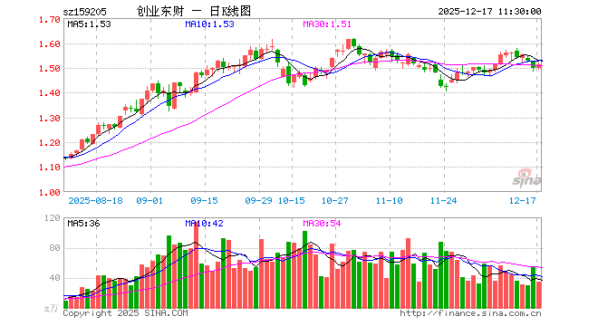 创业板ETF东财(159205)涨1.00%,半日成交额5174.68万元