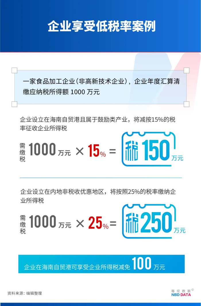 如果企业设立在海南自贸港且属于鼓励类产业目录企业,将减按15%的税率征收企业所得税,仅需缴纳150万元。