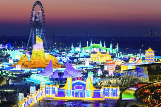 12月17日上午10时,第二十七届哈尔滨冰雪大世界正式开园迎客。园区占地面积达120万平方米,总用冰用雪量突破40万立方米,以历届之最的规模,打造一座冰天雪地的“童话世界”。新华社 图