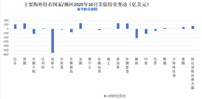 出于不同国家和地区的差异化立场与考量,法国、新加坡和中国香港在10月选择增持美债超过100亿美元,具体净买入额分别为138亿美元、138亿美元和132亿美元。