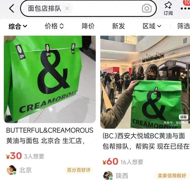 社交媒体上,“代买一个面包黄牛加价十几元”“排队超5小时只为抢购面包”……面对“面包刺客”,年轻人仍在抢着买单。在二手平台上,网红面包黄牛排队代购已成产业链,有人出价30—60元不等。