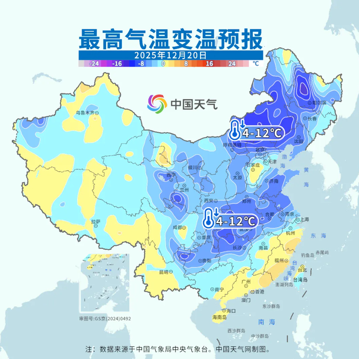 中央气象台12月20日6时继续发布大风蓝色预警:预计,12月20日08时至21日08时,内蒙古中东部、华北北部、山东半岛、西藏北部、青海南部等地部分地区有5~6级风,阵风7~8级;黄海中东部和南部海域、东海大部海域、台湾海峡、巴士海峡、南海东北部和中部海域将有7~8级、阵风9级的大风,渤海、渤海海峡、南海西南部的部分海域将有7级、阵风8级的风。