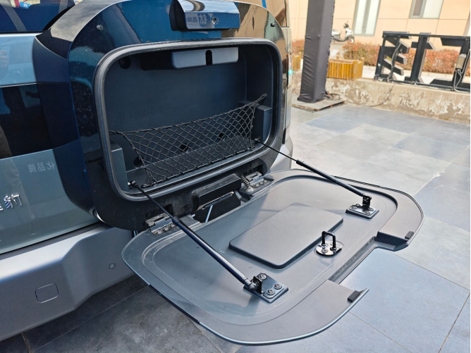 此外,钛7还配备了双50W手机无线充电、-6℃—50℃车载智能冷暖冰箱,支持语音控制、退电记忆和延时断电。