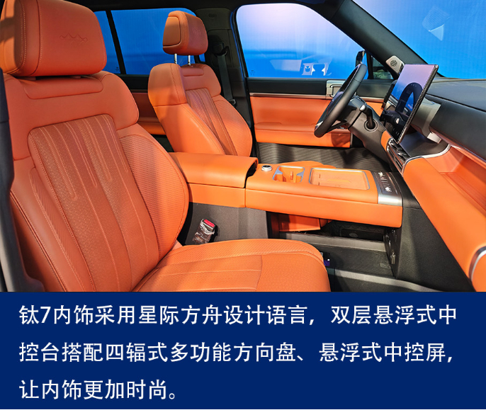 钛7还肩负着比亚迪的“智能车+”生态战略,钛7首发搭载比亚迪全新智慧生态,以车为核心,链接一切。比亚迪与不少优秀的行业公司定制了一系列产品,包括车载的宠物座舱、可在车机内操作的儿童安全座椅等。